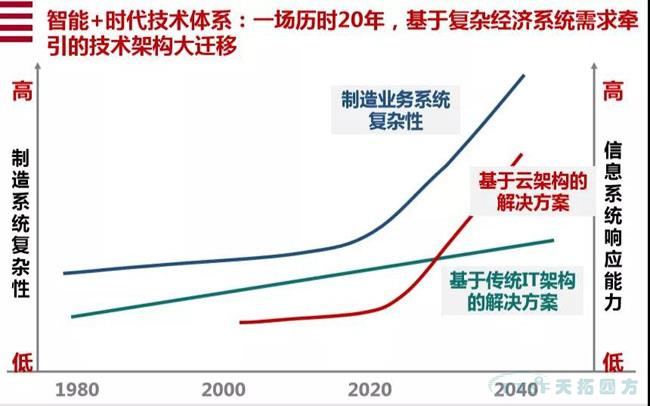 我們今天討論工業互聯網、工業云,我們討論邊緣計算、時間敏感網絡等概念都在描述一件事情,我們在構造一個新的架構體系,我們可能正在迎來一場歷時20年的技術架構體系大遷移時代,這場遷移5年前已經開始,會在未來15年結束。這是一場基于復雜經濟系統需求牽引的技術架構大遷移,我們商業系統、制造系統變得越來越復雜,這種復雜性,來自于產品本身、來自于客戶需求、來自于全球化、來自于供應鏈、來自于世界政治經濟環境的變化。